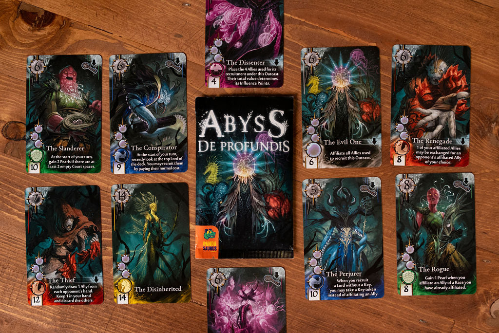 The third expansion for Abyss introduces the 10 Outcasts! Stripped of their titles as Lords, and banished in the farthest reaches of the abyssal depths, they evolved to survive and prepare for their return.
