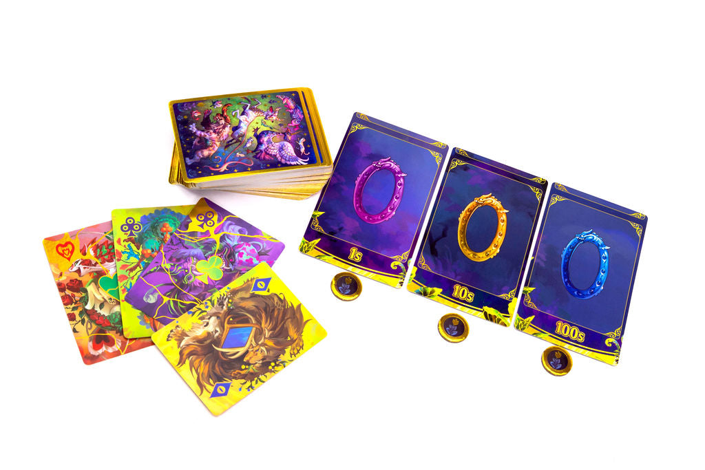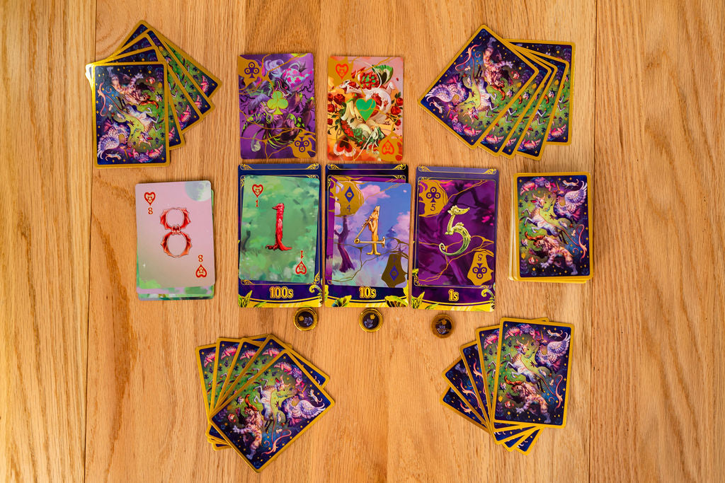 Beasts is a cooperative card game where players work together to build an ever-climbing three-digit number by covering one digit at a time. On your turn, you must play all cards of a chosen suit, carefully transforming the current number into something higher—all while staying in sync with your team.
