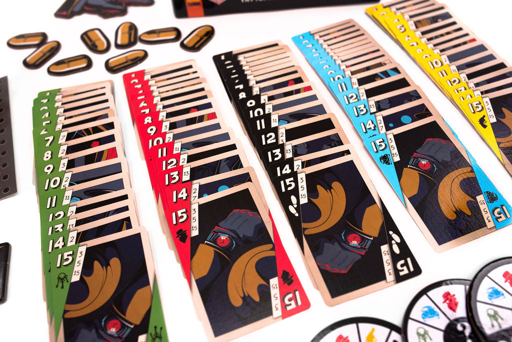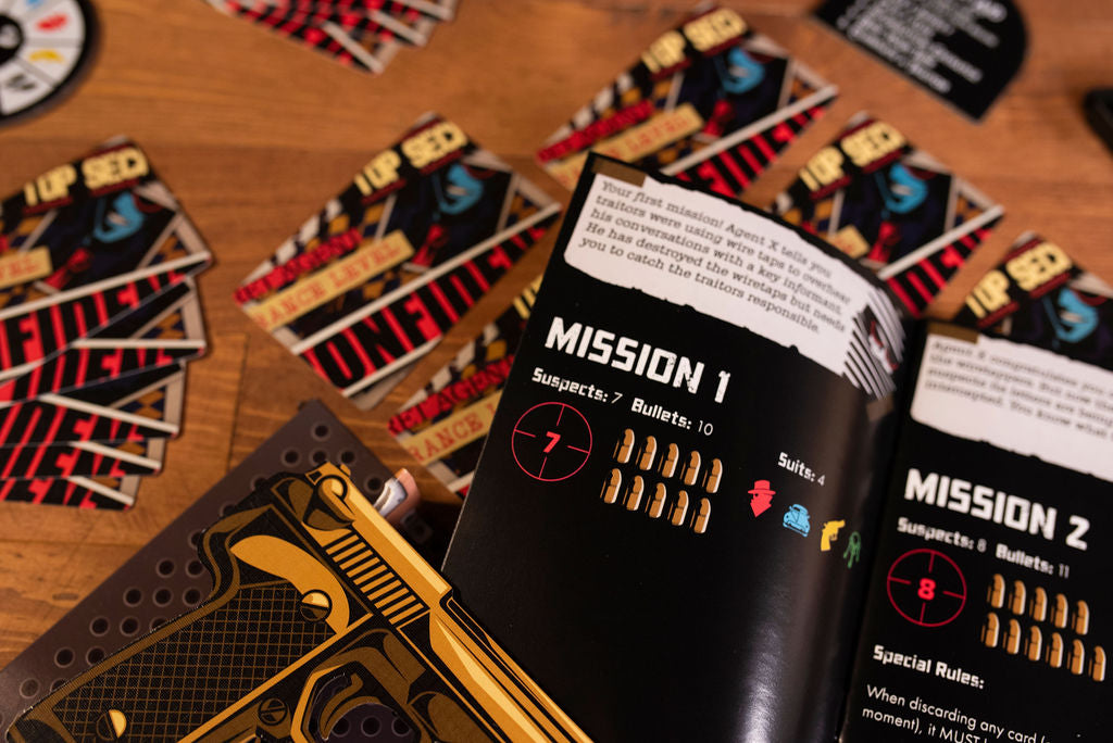 the same number as the Suspect, or its number is a multiple or factor of the Suspect’s number. If an Agent is ready to guess they may attempt to Eliminate the Traitor, but beware — you have a limited number of bullets each mission!