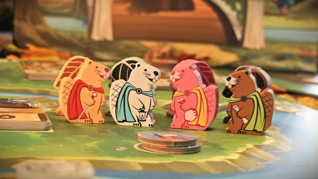 Each round, you choose how to spend your day. You can rest to earn coins or move across bridges to visit new areas and meet animal allies. There is one catch: you cannot cross the same bridge twice in a day, so planning your route is key! Over four rounds, you will collect resources and unlock abilities to complete goals and score the most points.