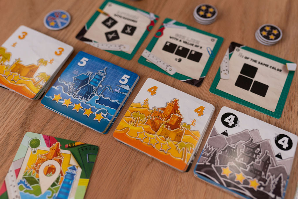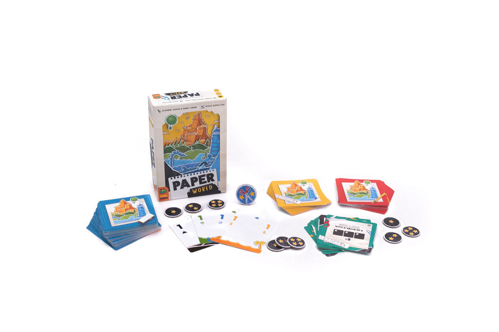 In Paper World, you’ll step into the role of a traveler recreating the stunning landscapes you’ve seen, using layers of colorful paper. On your turn, choose to either: