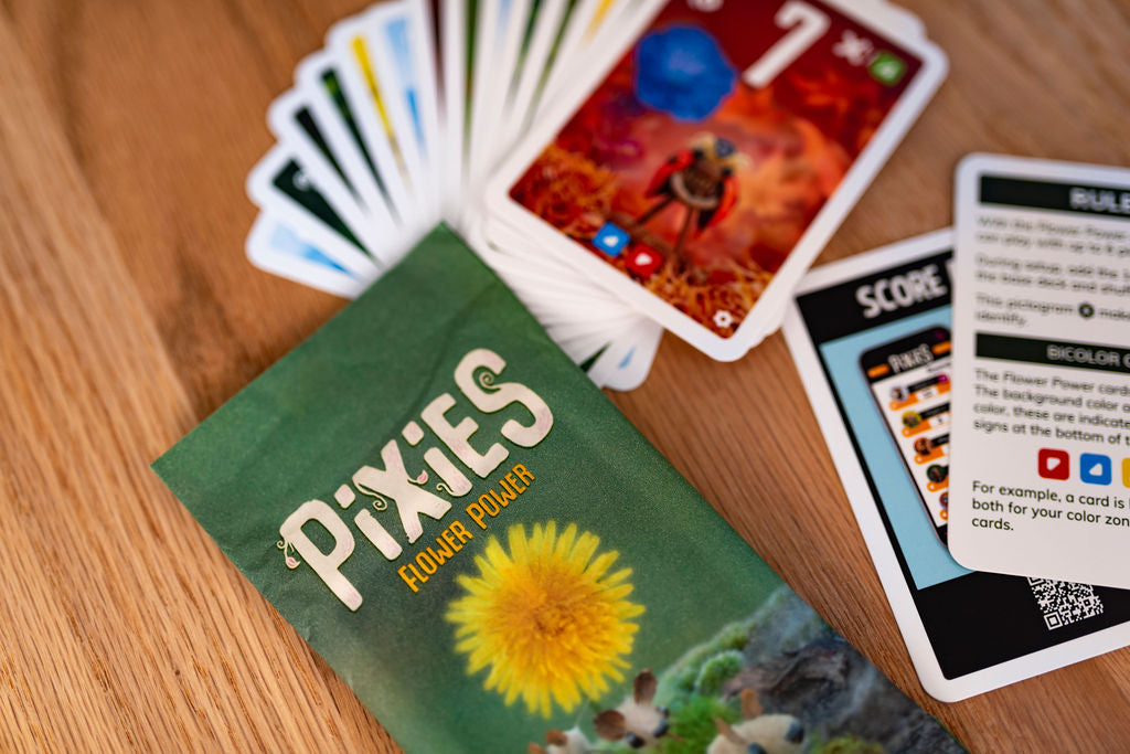 The first expansion to Pixies expands the game to 6 players! Additionally, it introduces 14 new cards and 2 new rules: