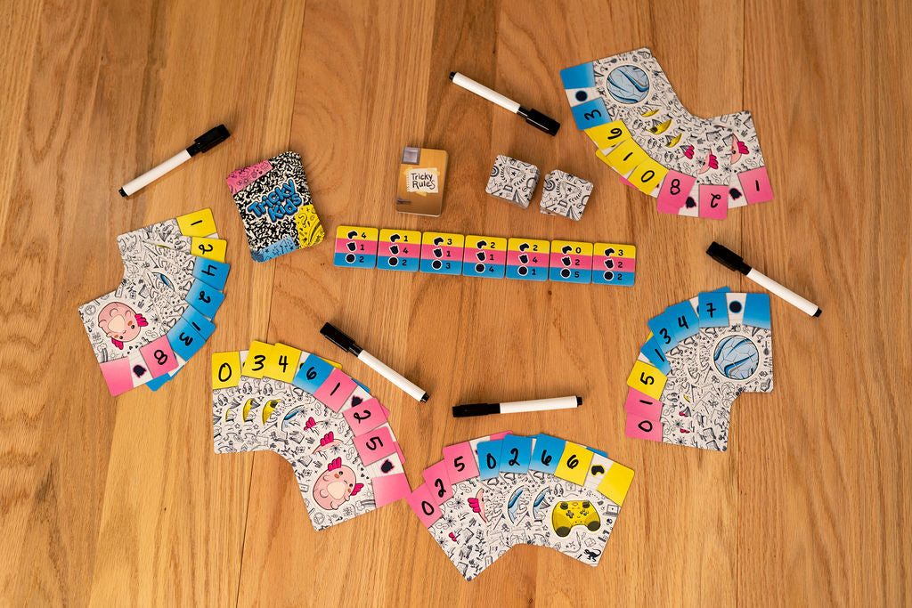 This is a must-follow trick-taking game with a twist: you write the values on your own cards each round, making every hand a new puzzle. Win tricks to claim point tokens, but choose carefully, because not all tokens are created equal. Add optional “Tricky Rule” cards to mix things up, and you’ve got a fast, funny, and replayable game of strategy and surprises.